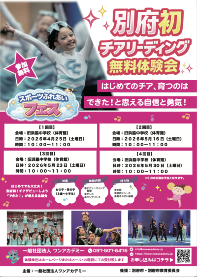チアリーディング・体操教室!別府校開校のお知らせ